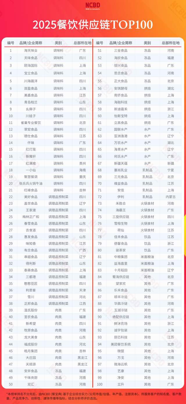 需要指出的是,一些上榜企业的营业较为多元,本次榜单按其对餐饮企业的次要供应分类。每个类此外企业名单如下(排名不分先后)!
